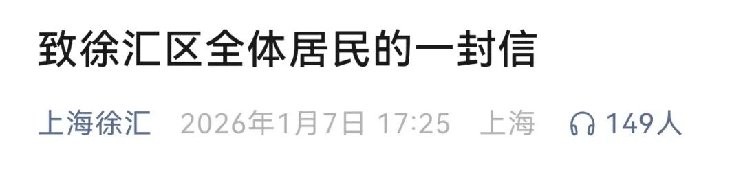 徐汇区全体居民朋友们: