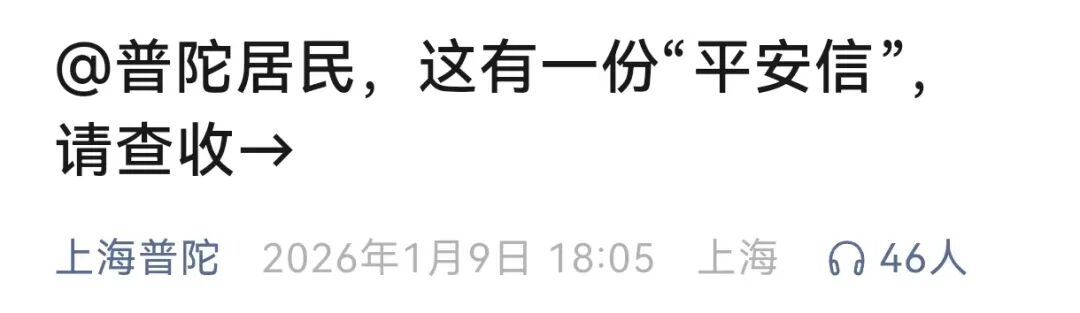 各位普陀的居民朋友: